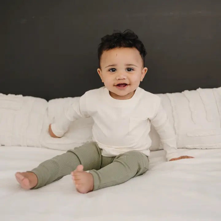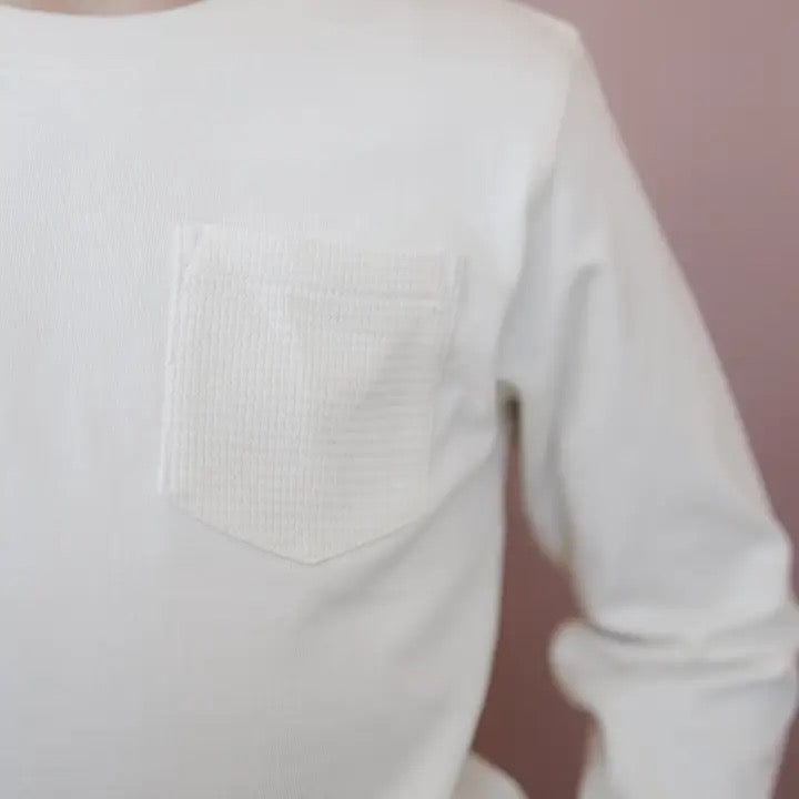 Enhance your wardrobe with our Long Sleeve Waffle Knit Pocket Tee, perfect for versatile styling. Create a variety of outfits by pairing it with our Everyday Pants or Joggers.